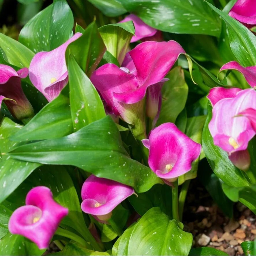 山地植物馆入口区域陈列有兼具红花、红叶的苦苣苔与秋海棠,并搭配彩色马蹄莲等应景植物进行联合造景。