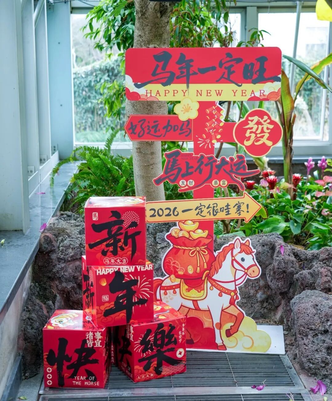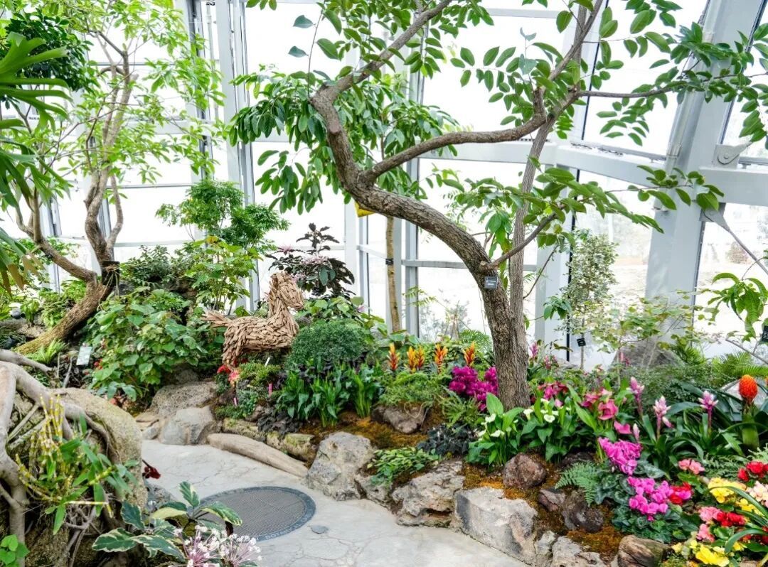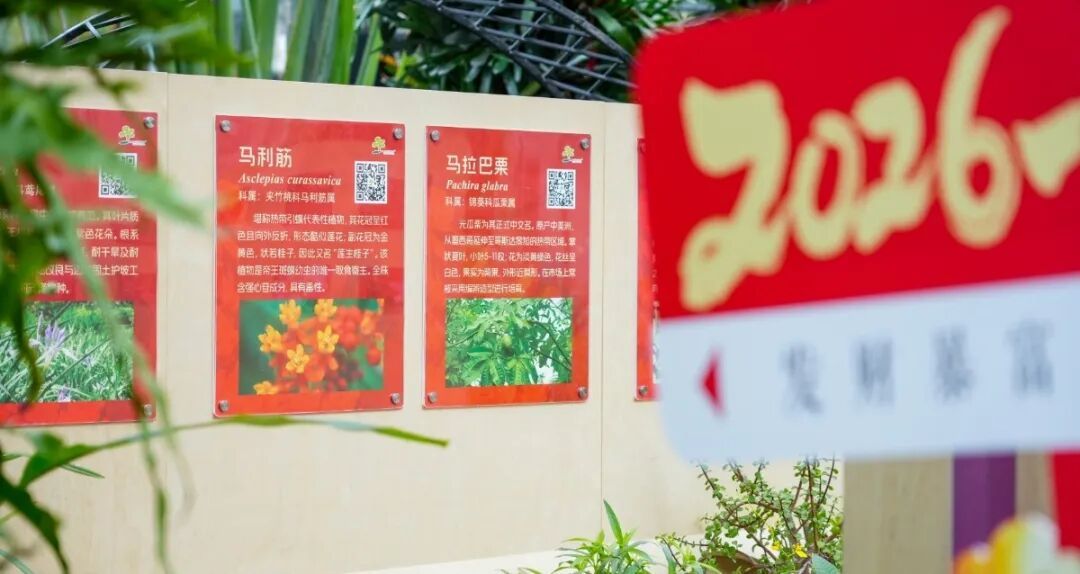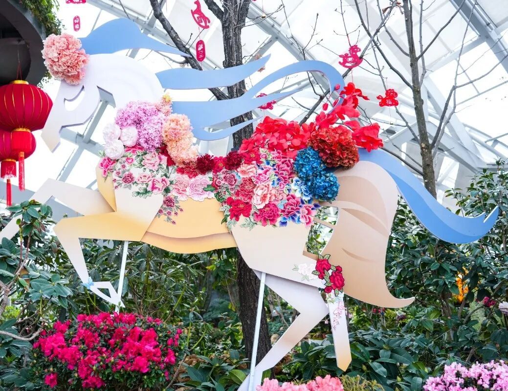 该展示延伸至全园,四大温室及园区各处均藏有“马”字植物,且统一悬挂标识标牌,同步打造“寻马藏花”活动。