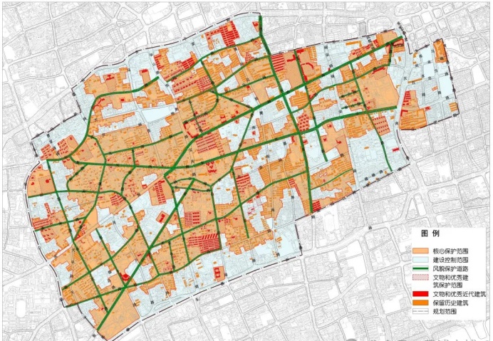 其横跨徐汇、黄浦、静安和长宁四个区,区域内以风格多样、富有特色、环境优美的花园住宅为主要特征,是上海花园住宅最集中、覆盖面最广的地区。汇集了大量公寓、新式里弄、公共建筑等类型多样、风格迥异的历史建筑,形成了独特的海派城市肌理。