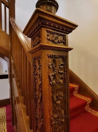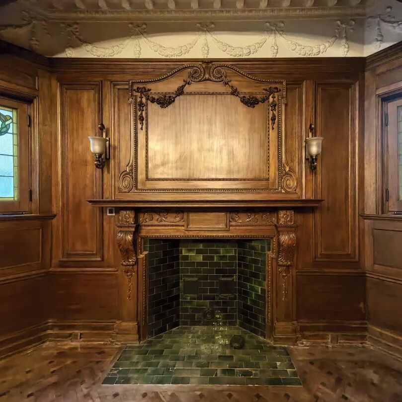 马勒住宅具有北欧建筑风格,主楼立面凹凸多变,屋顶矗立着高低不一的两个四坡顶,塔坡材料采用青铅瓦,上面有拱形凸窗,饰有浮雕装饰物。外墙用泰山面砖砌贴,突出的平台栏杆砖柱上设置宝瓶形绿釉装饰。由于马勒家族长期从事海运生意,且早年在中国发迹,其花园和室内设计融合了鲜明的航海主题与中式元素。无论是门口镇守的石狮子、象征航海构件的木雕装饰,还是围墙上采用的绿色琉璃瓦,乃至海草拼花图案的木地板,都体现了这一独特的文化交融。