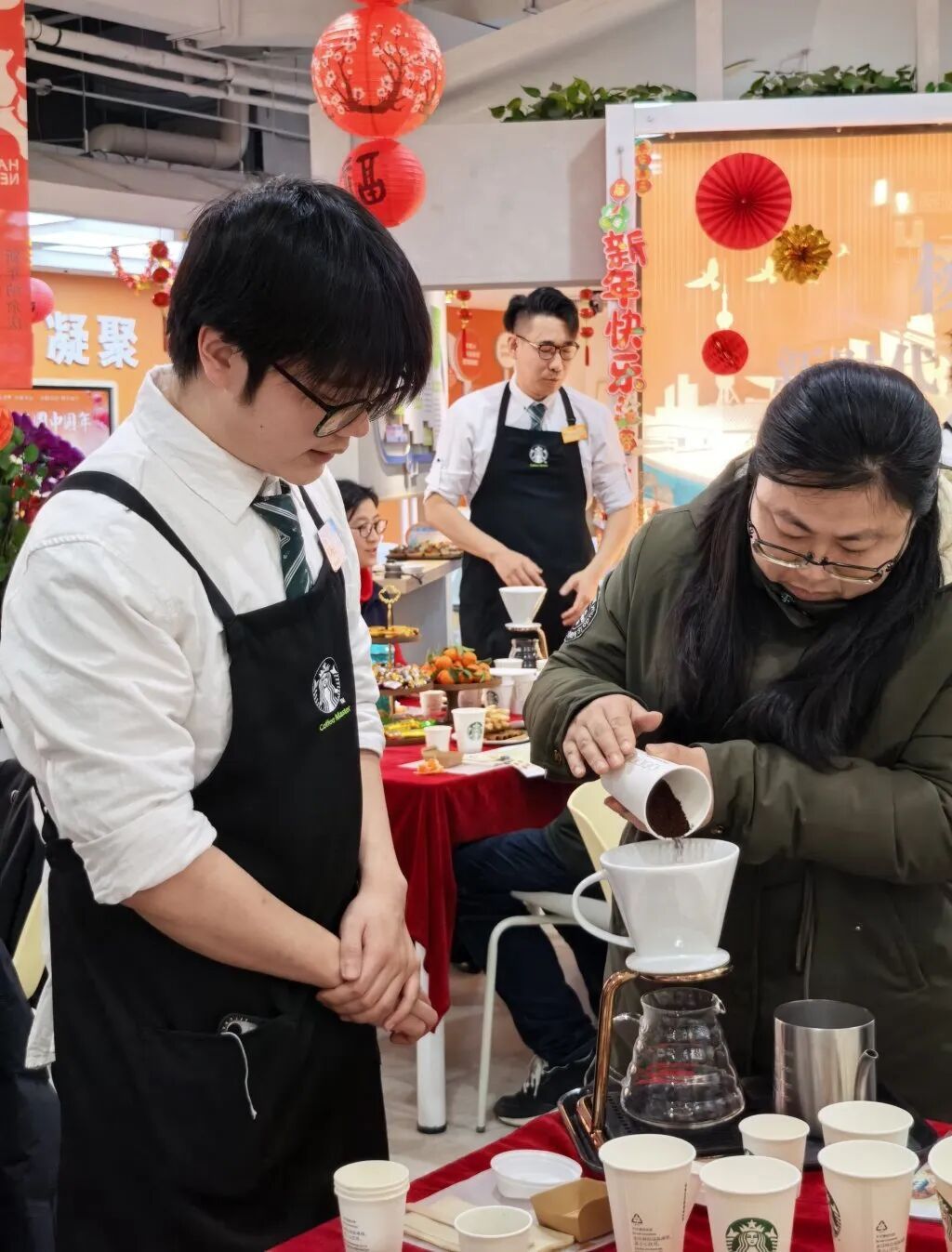 作为杨浦区“我们的节日·春节”系列活动之一,本次活动由杨浦区新时代文明实践中心与星巴克杨浦区营运团队共同举办,不仅有咖啡的品鉴,更是一次新时代文明实践的“打开模式创新”,参与者们在亲手冲泡中感受慢生活情趣,在浓郁香气里共贺新春佳节。
