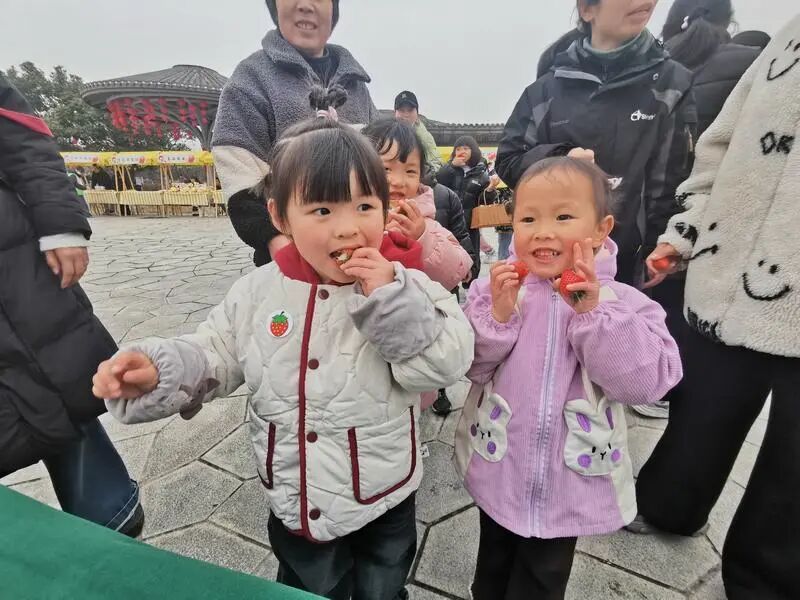 小朋友盛田蕊说:“这边的草莓好甜、好好吃,我待会儿还要去采草莓。”