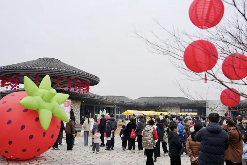 2月5日,众所期待的宝山区罗泾镇2026年春日“莓”好时光·“泾”采草莓节如约而至。在罗泾镇海星村蟹逅馆的广场上,镇内三家热门草莓园、8个明星草莓品种一一亮相,为市民带来一场别样的春日甜趣之旅。