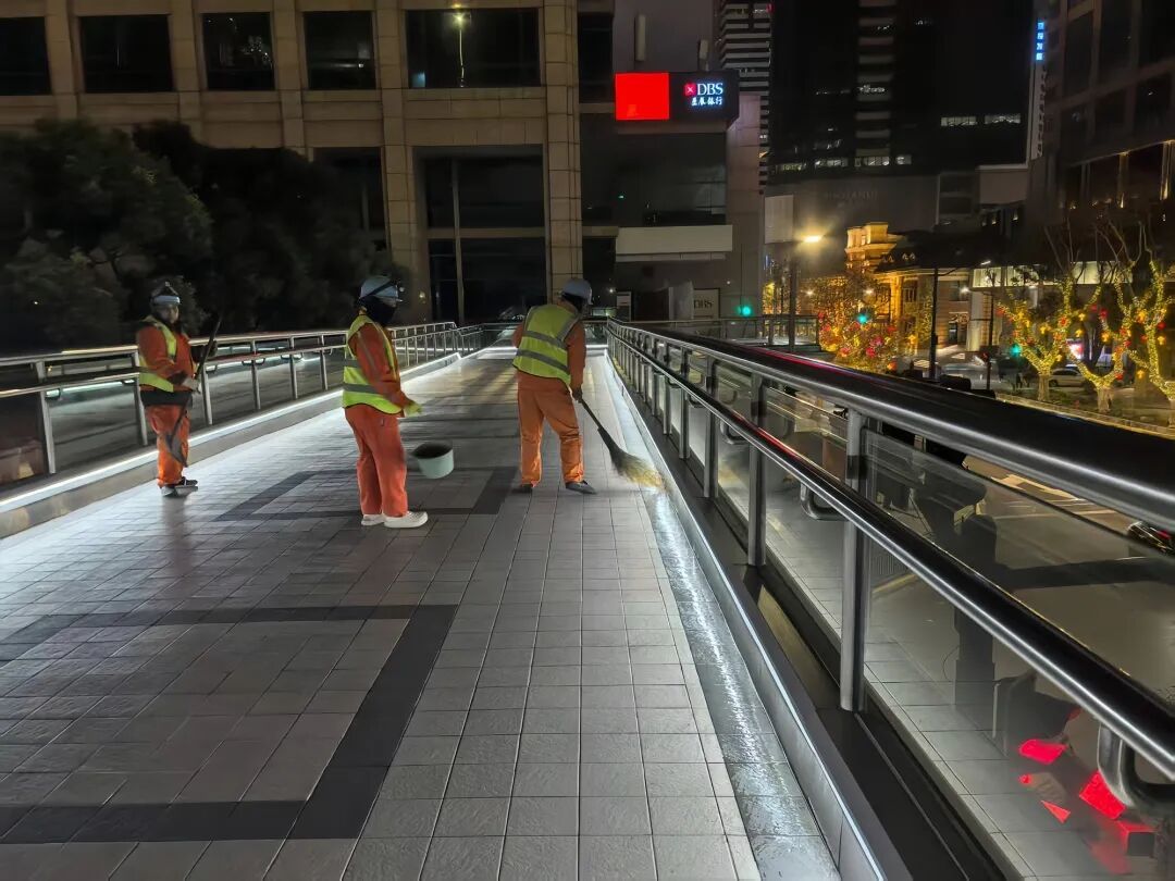 针对雨雪天气易结冰的人行天桥、高架下匝道、地下通道等重点区域,黄浦市政组建应急巡逻队,加大巡逻频次,并在易结冰的区域撒上工业盐。