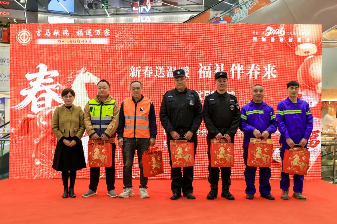 春临黄浦添新韵,福润职工暖人心。2月6日上午,“吉马献瑞福送万家——带副春联回家乡暨黄工夜校启动仪式”在打浦桥日月光中心B2中厅暖心启幕。活动以多元文化盛宴与暖心慰问之举,向留沪坚守的一线职工送上新春祝福,同时正式拉开2026年黄工夜校的崭新篇章。区委副书记徐建华、市总工会副主席徐珲出席活动,并击鼓迎新,激励全体黄浦职工以饱满热情和昂扬斗志开拓奋进。