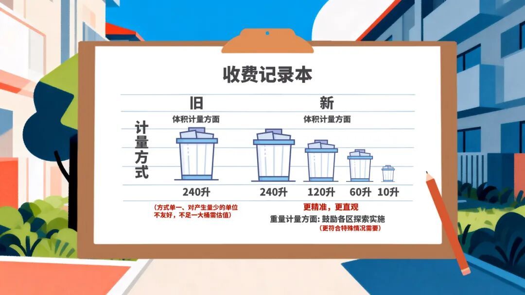 变化,始于最基础的计量单元。过去,以240升大桶为主的计量方式,对垃圾产生量较小的商铺而言不够友好,估值也易产生争议。新《办法》带来了显著的精细化改进。在普陀区等地的先行实践中,收费员手中的记录本上,除了标准大桶,更增添了120升、60升乃至10升等多种规格的小桶选项。这种“量体裁衣”式的计量方式,使得垃圾产生量与费用关联更为直观、精准,从源头上体现了公平,也无声地激励着各单位通过分类与减量来优化自身的“垃圾账单”。