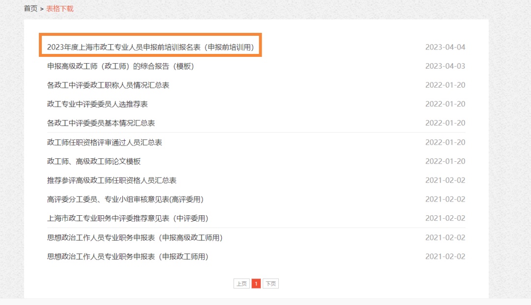 1 政工师、高级政工师 职务任职资格申报前专业培训报名 报名时间和方式 2026年2月6日至3月5日,登录上海社会宣传网,“政工师、高级政工师申报前专业培训班”栏目,完成网上注册、报名、缴费。 上海社会宣传网网址:http://www.shshxc.cn 报名对象 1.凡申报政工师、高级政工师职务任职资格的政工人员,均须参加申报前专业培训并取得培训合格证书。 2.2026年内达到退休年龄、3年内不符合申报相应任职资格条件的,不在培训报名的受理范围。 报名流程 1.提交加盖单位组织人事部门印章的《上海市政工专业人员申报前培训报名表》(上海社会宣传网“表格下载”栏目下载)。