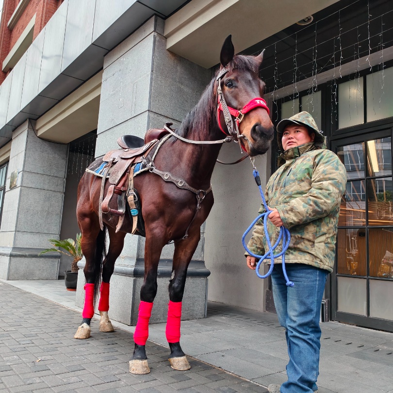 “三、二、一,看镜头!”博主梓淋在摄影师的指挥下,与小叮当来了一次“亲密接触”。“在市区里能看到两匹真马,真的很惊喜!”梓淋说,我刚刚也和马合影了,还尝试骑了一会儿,它们看起来特别温顺,也很配合。在马登仓库外与马合影,是一种非常特别的体验。