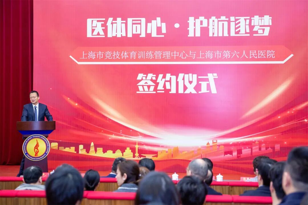 陆檩在讲话中强调,竞体中心与市六医院的本次合作,不仅是两家单位携手共进、优势互补的重要里程碑,也是上海深入践行体育强国、健康中国国家战略,赋能全球著名体育城市建设、助力健康上海发展的重要举措。他提出三点希望:一是站位全局共谋发展,打造医体融合示范标杆;二是协同攻坚提高质效,筑牢竞技体育发展根基;三是成果共享惠及民生,赋能全民健身与全民健康。市体育局将全力支持双方合作,为双方合作创造更优环境、提供更强助力。