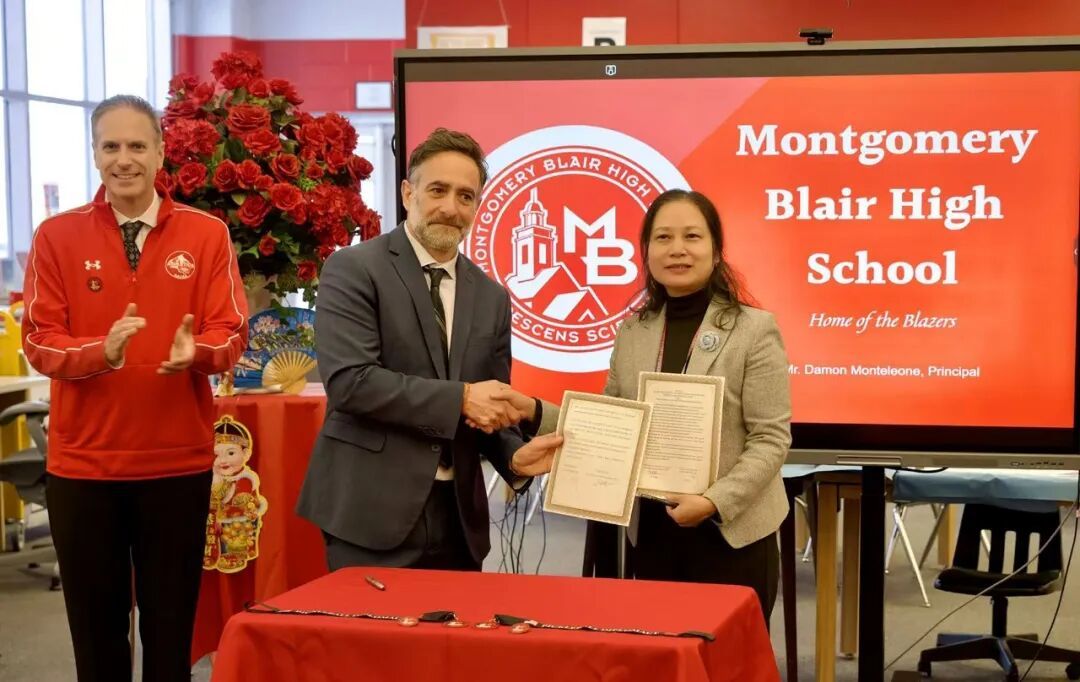 布莱尔高中作为蒙哥马利郡公立学校系统下的知名学府,以其传统与现代相结合的教育理念著称。学校不断探索和创新教育模式,致力于为学生提供全面、优质的教育。这与卢湾高级中学培养学生的理念不谋而合。两校签约姊妹学校,不仅连接了中美两国的青少年,也开启了一扇理解与友谊的窗口,为两国青少年搭建起更为稳固的友谊桥梁。