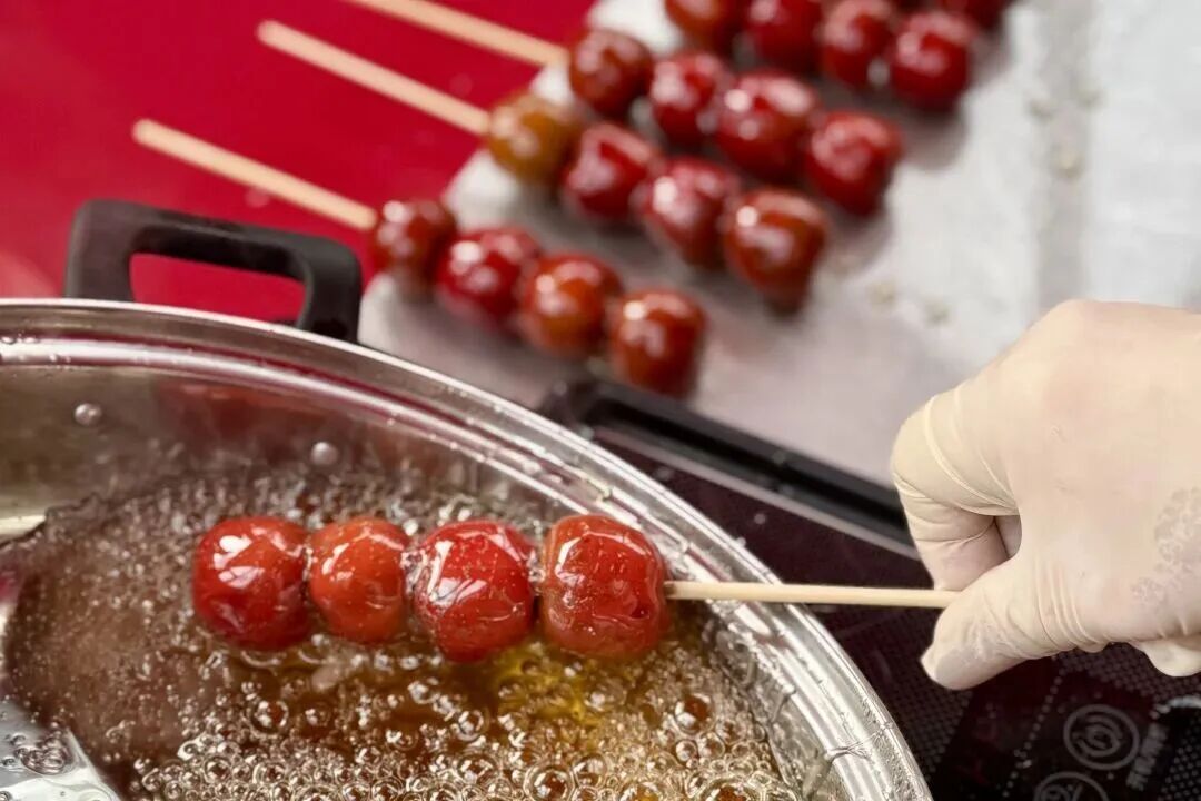 在非遗体验区,酸甜可口的糖葫芦、精巧灵动的捏面人、墨香四溢的书法春联齐聚于此,现场还能免费领取春联带回家,把新年的祝福捎给家人。
