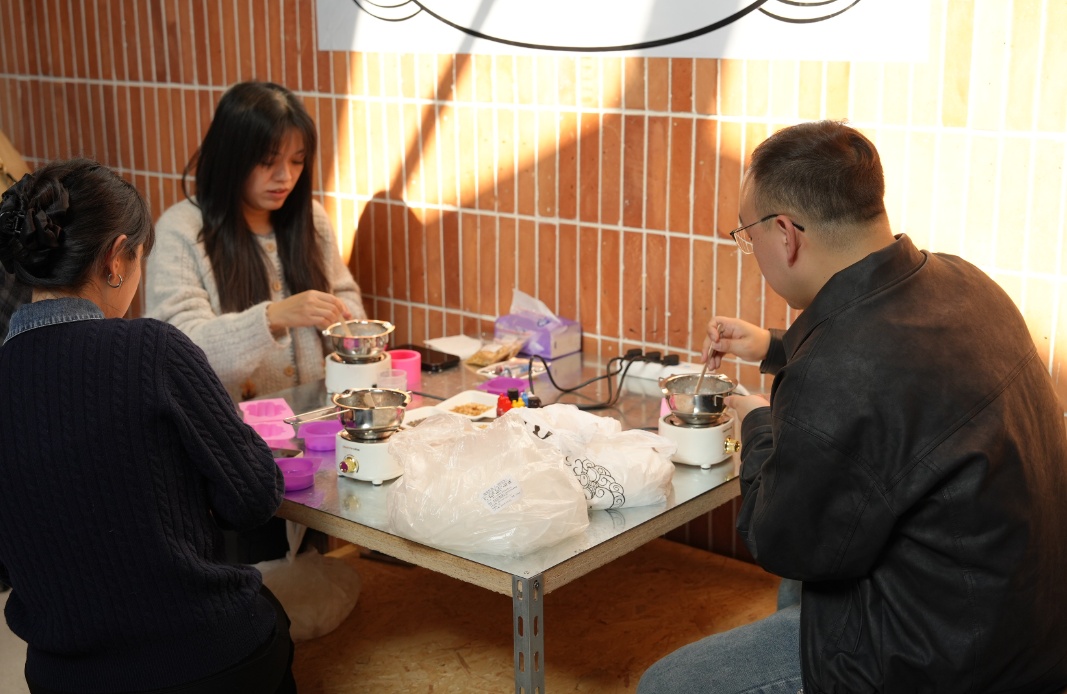 随后,青年们分组进行手工活动,板糕、车载香薰、藏红花手工皂等项目各具特色,大家在动手实践中交流技巧、增进感情。活动最后,青年们还在M515园区内展开探索,寻找5个隐藏打卡点位,收集新年祝福。