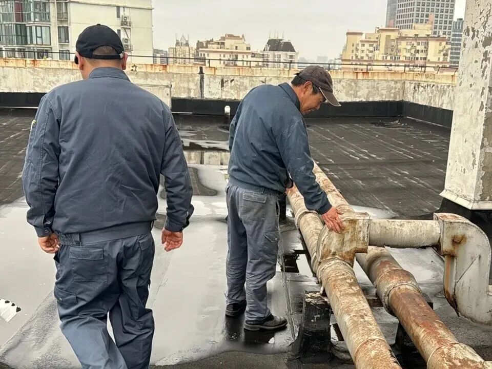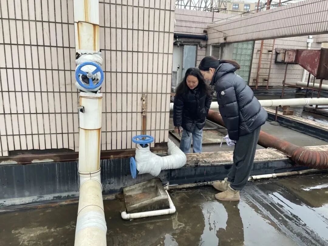 淮海中路街道第一时间启动应急响应机制。街道综合行政执法队对辖区内重点商圈、主要道路沿线等区域的外摆设施、广告牌、灯箱等进行专项检查,同步提醒商户清理门前积水,防范高空坠物和地面结冰风险。街道城建中心牵头对各住宅小区开展外立面高坠隐患专项排查,督促物业设立警示标识、加强巡查。同时,全面检查小区内裸露水管、户外消防栓、水箱等共用设施的防冻保温包扎情况,确保极端天气下设施设备正常可用。