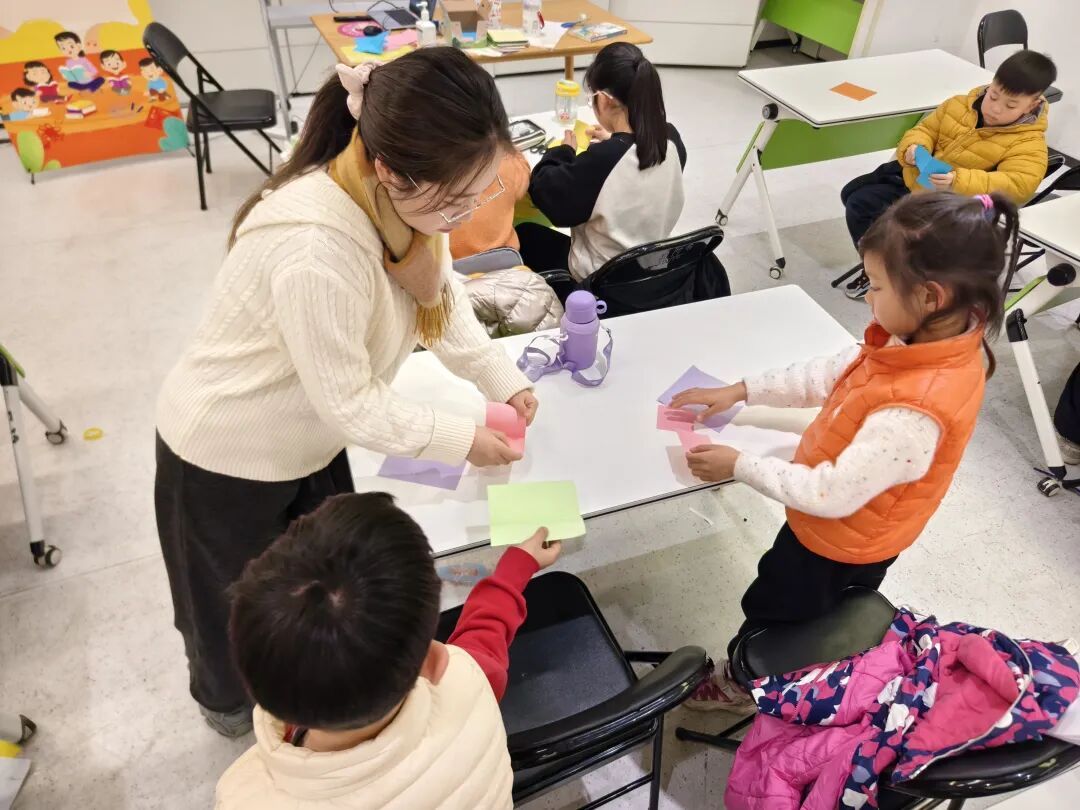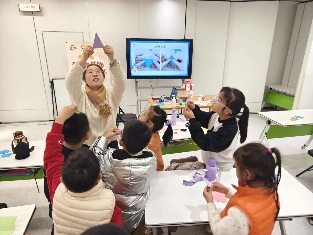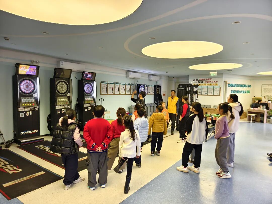 下午2点钟,爱心寒托班的孩子们分批次来到“吴淞坊”的飞镖活动营地,他们舒筋活络,跟着指导老师学习飞镖投射。 对于他们中的大多数人来说,投射飞镖还是人生中的第一次。飞镖营地的设备平时主要是给成年人练习或比赛使用,因此对于身高、年龄和力量都存在很大差距的小朋友们来说很有挑战性,这对于指导老师的技能传授也同样带来了挑战。为此,经验丰富的指导老师主动调整“游戏规则”允许小朋友在投射飞镖时往前两步,离靶标更近,这样就降低了难度。 经过一番指导和练习,越来越多的小朋友学会了飞镖运动的基本技巧,他们的“第一次”在挫折和纠错中取得了进步。 一位练习飞镖的8岁小男孩说:“下午投飞镖特别好玩。” 随着“暖冬”的常态化,孩子们在上海看到雪花的机会越来越少了,但是雪花永远是冬天的“符号”。在爱心寒托班,孩子们通过动手动脑,以“硬核审美”的方式迎来了一片片“雪花”。这个用手工纸动手制作“雪花”的寒假课,则来源于不久前一个下雪天带给辅导老师的灵感。 寒托班手工课辅导老师表示:“前阵子上海下雪了,我是幼儿园老师,看见班里的小朋友都围到窗边,要去看雪,大家觉得很漂亮、很感兴趣。我想既然有这个机会,就来做志愿者,请寒托班的小朋友来看一看,雪花是怎么样形成的,看看它具体是什么构造,让我们小朋友亲手去折一折雪花,这样即使在看不到真雪的情况下,也可以自己把雪花折出来,是件很有趣的事情。”