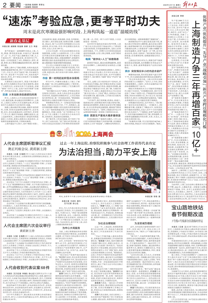 2025年,上海市规上工业总产值达4.07万亿元,时隔两年再次迈上4万亿元台阶。目前,上海集成电路、张江生物医药、新能源汽车、大飞机、船舶海工等5个集群入选国家级先进制造业集群,有1026家专精特新“小巨人”企业,以及47家国家级单项冠军企业。与此同时,上海工业企业核心要素成本正连年下降。2024年,上海发布进一步促进工业降本增效若干措施,当年,全市工业直接成本降了118亿元。在此基础上,2025年,上海市工业直接成本又降103.3亿元。受此带动,工业企业每百元营收成本降至81.5元,较全国平均水平低4元;工业企业利润率达6.3%,高于全国1个百分点。