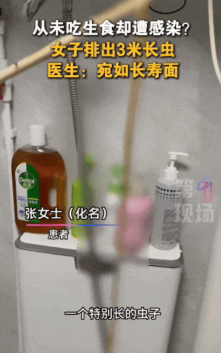 医生确诊张女士感染了牛带绦虫,“它看起来就像一根长长的长寿面。”