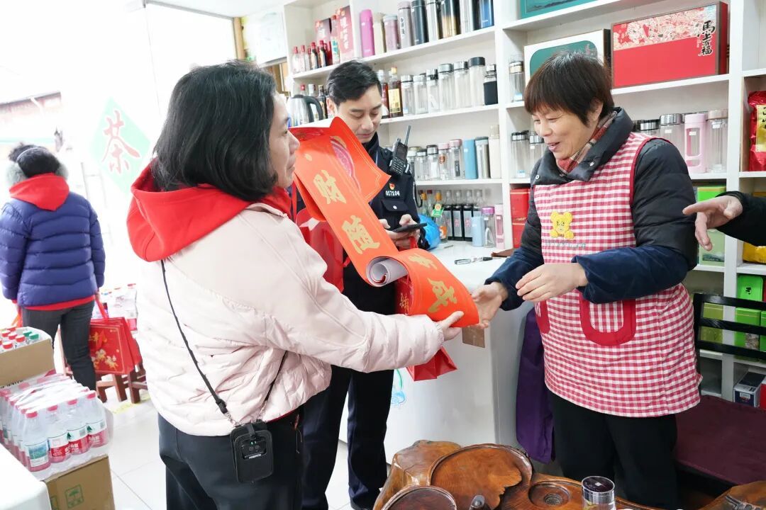 活动期间,由街区书记带队,网格民警与银耀物业工作人员组成的“新春暖心小分队”还走访了浩城华苑、南花苑周边22家商铺,送上春联福字,并提醒节日用电与消防安全。