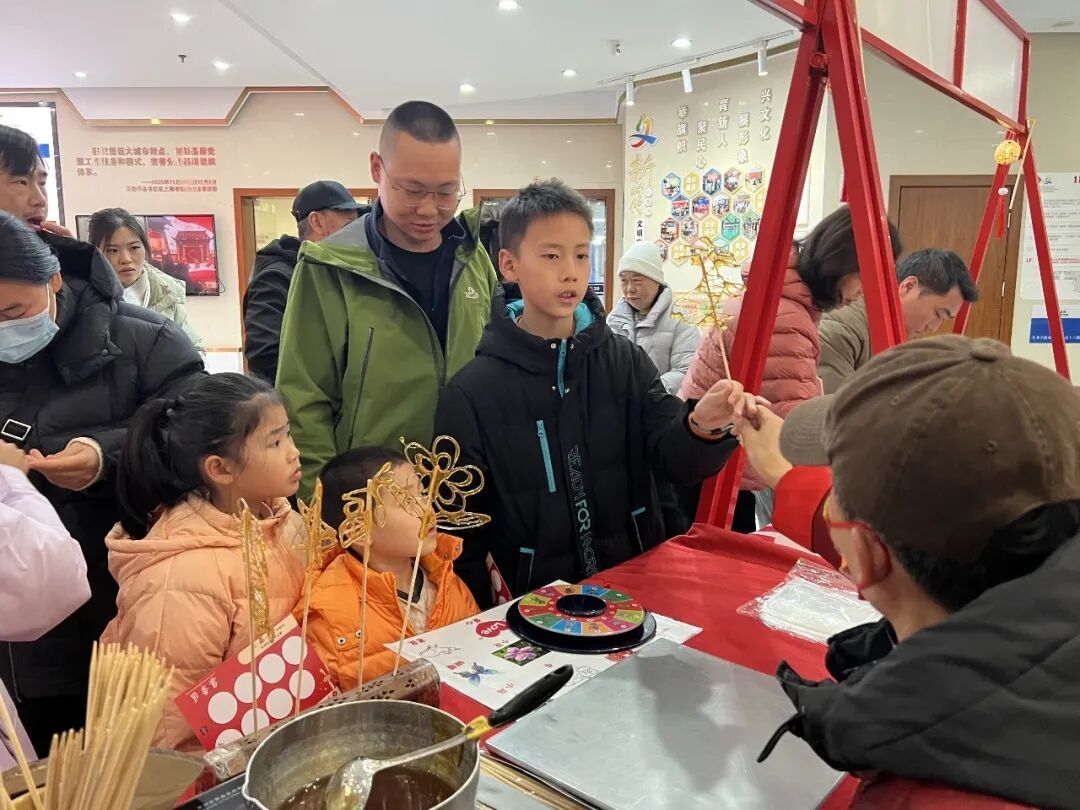 现场不仅有趣味游戏,还有浓浓的手作温情。前100名参与者可免费体验新春小灯笼DIY,并领取非遗糖画和造型气球。“收获满满!”居民朱修齐表示,“因为今天正好来图书馆学习,看到有活动就参加了,新年气息浓厚,也增加了我对传统文化的了解。”