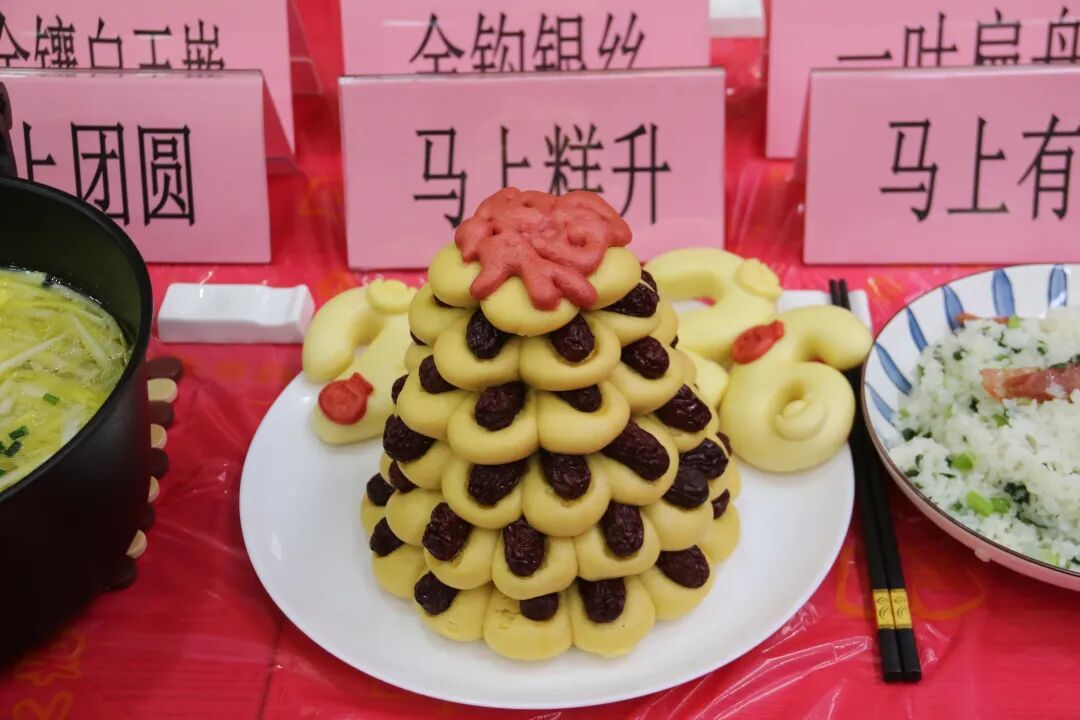 此外,今年的娄塘年夜饭还创新地推出了6个马年特色菜:马跃兰丝(马兰头炒干丝)、马不停蹄(红烧猪蹄)、马上团圆(鱼丸)、马上有味(菜饭)、马上结圆(汤圆)、马上糕升(发糕),兼具吉祥寓意和美味口感,大家吃得赞不绝口。