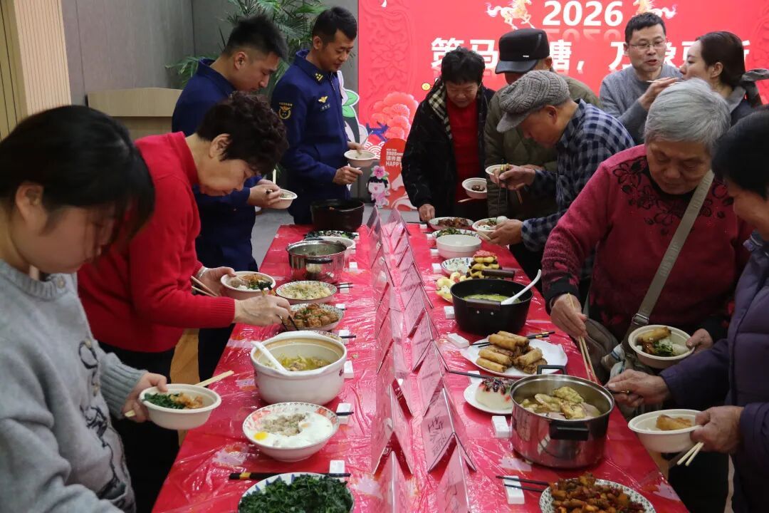 春节将至,娄塘社区党群活动中心、我嘉·邻里中心举行2026年“娄塘一桌菜 烟火一家人”年夜饭活动,外卖骑手、消防员、辖区独居老人、楼组长、居民代表等齐聚一堂,看节目、玩游戏、吃年夜饭,一起过个热热闹闹的早年。