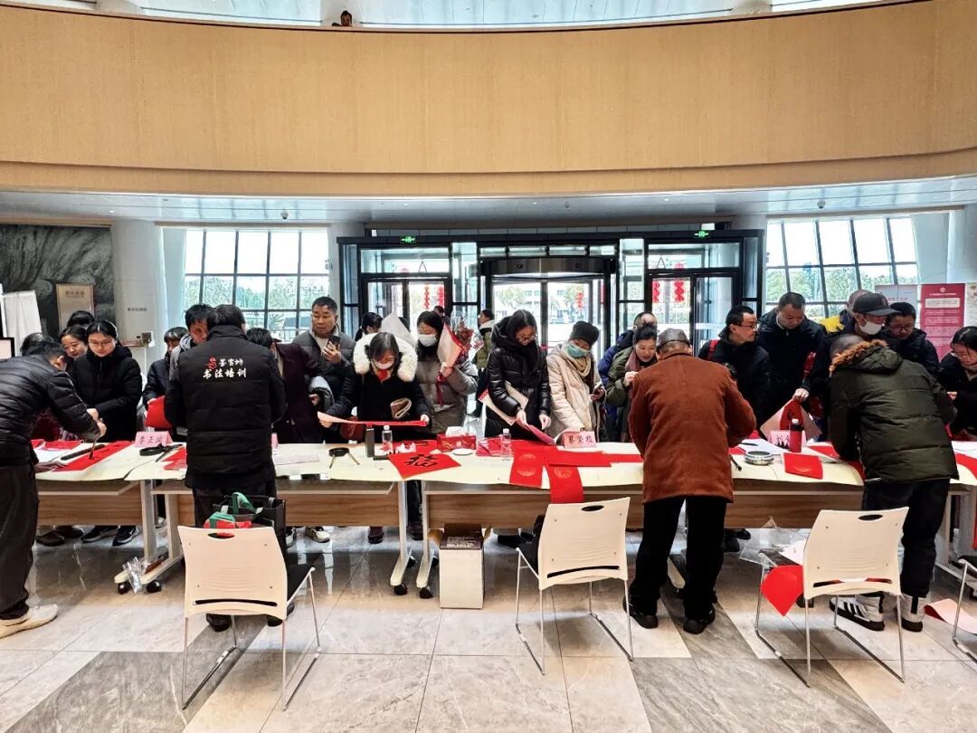 上午10时,记者步入活动现场,只见一串串火红的灯笼与中国结将大厅装点得暖意融融。春联书写区前,已有不少市民排起长队,多名书法老师立于书案前挥毫泼墨,一副副饱含祝福的春联和“福”字跃然纸上,墨香四溢。旁边的剪纸区同样热闹,只见剪纸手工艺者巧手翻飞,不一会儿,栩栩如生的“福”字窗花、“马”字挂饰便呈现在大家面前。“手写的春联更有年味。”市民孔凡娟小心翼翼地将刚刚写好的春联铺平晾干,“今天我选了‘马踏祥云开锦绣,龙衔瑞气焕乾坤’,希望新的一年万象更新,吉祥如意。”