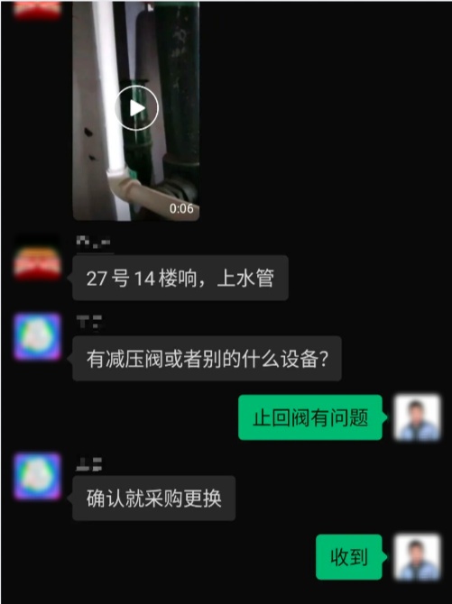 尽管冬日阴雨连绵,维修团队仍迅速对两栋楼的管道系统进行排查,很快锁定27号楼14层上水止回阀故障。排查过程中,物业在群内实时通报进展,有效安抚了居民情绪。