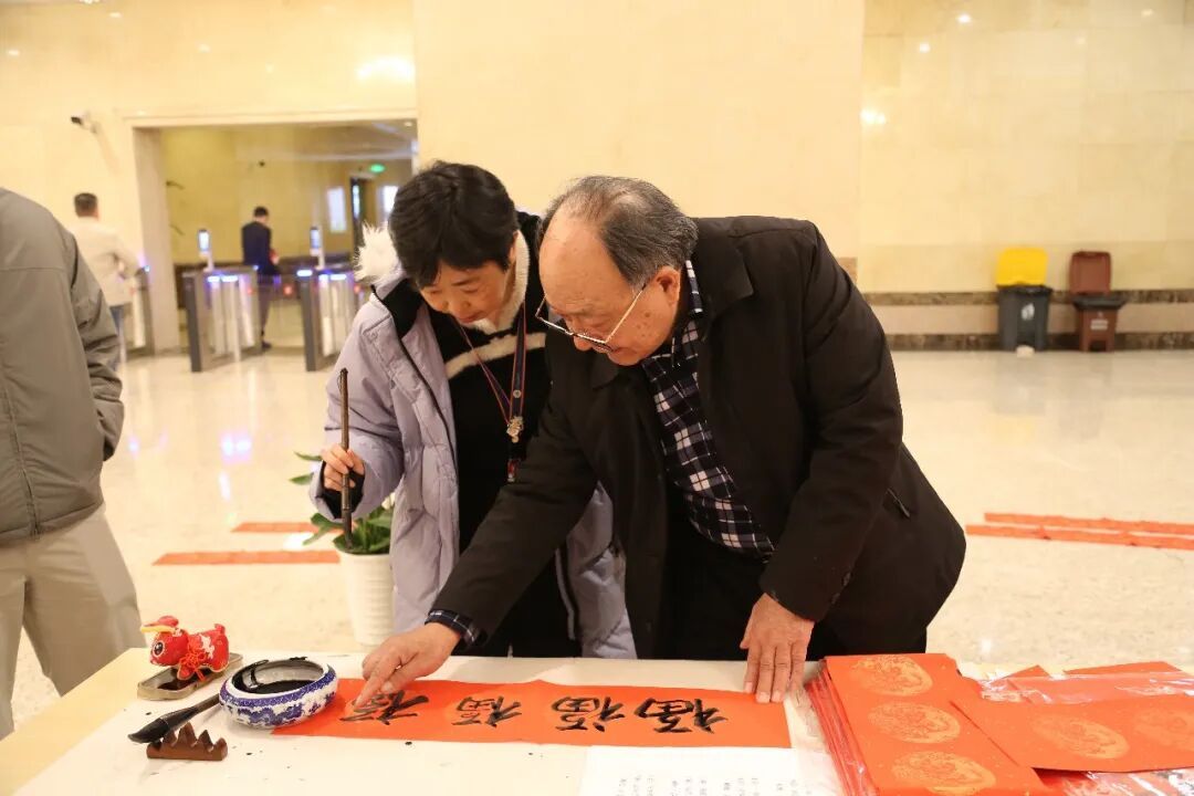 三位书法老师现场挥毫,为白领们书写马年专属春联与“马上有福”福字,红纸上笔墨生花,浓浓年味扑面而来,不少白领驻足求字、品评观赏,定格新春美好期许。