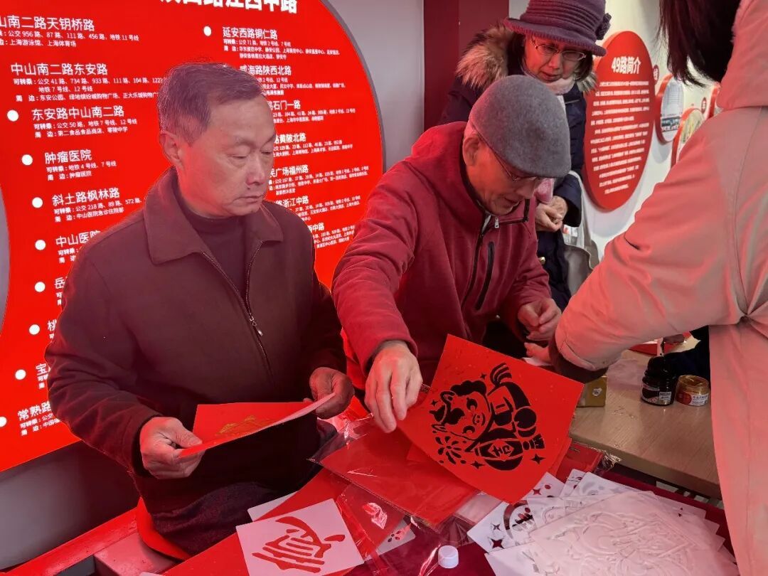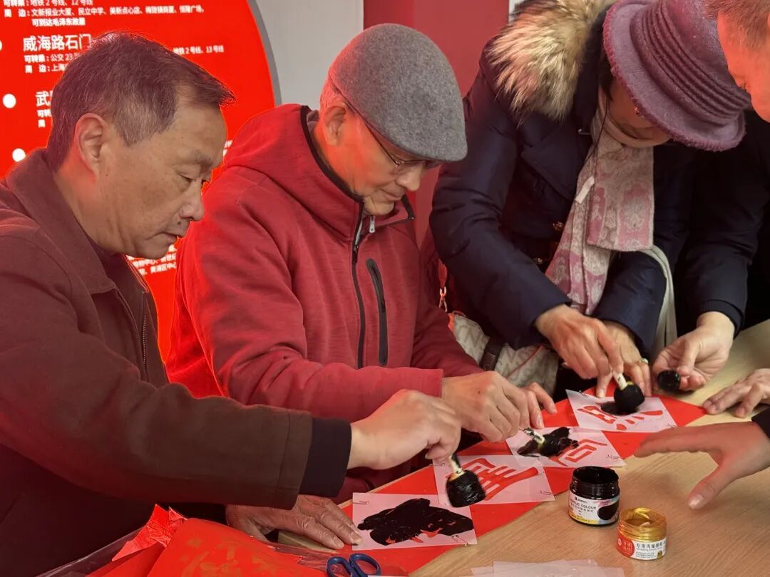 活动现场,非遗拓印区域人气爆棚。整齐摆放的非遗拓印模具、大红宣纸,搭配浓醇的黑墨与鲜亮的金墨,这些充满“年味”的物品一亮相,便吸引了众多市民驻足。工作人员全程耐心指导,助力市民参与其中。福字、奔腾的马年生肖图腾等吉祥纹样模具,洋溢着喜庆氛围。市民们兴致勃勃,指尖灵活翻飞,有的蘸取黑墨,拓印出沉稳大气的福字;有的用金墨勾勒灵动的马纹。不一会儿,一张张色泽鲜亮的福字、春联便跃然纸上,墨香与年味交织,弥漫在整个枢纽。大家手捧亲手制作的作品,纷纷来到“学习强国”网红墙前打卡留念。在沉浸式领略中华传统文化独特韵味的同时,也将“马年行大运、出行皆平安”的美好祝福收入囊中,脸上洋溢的笑容比红纸还要灿烂。