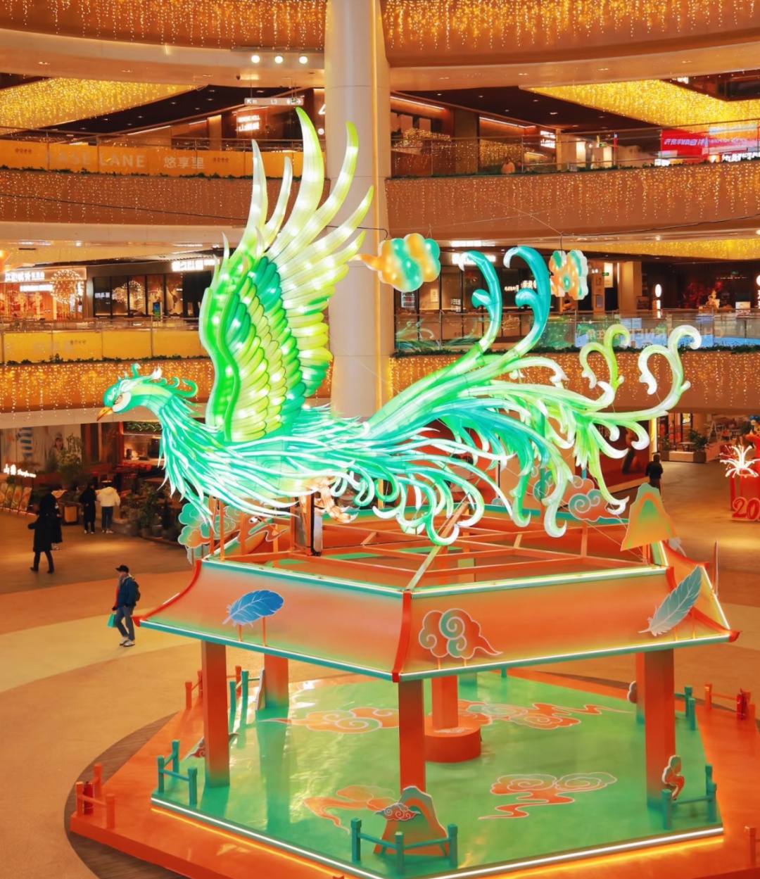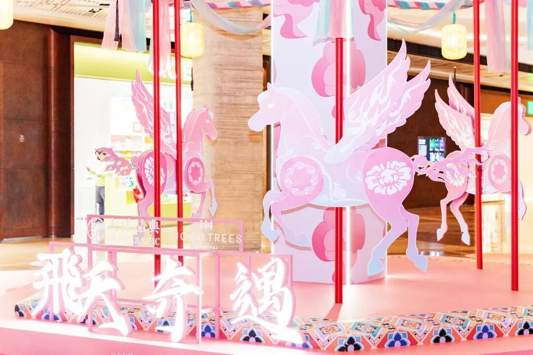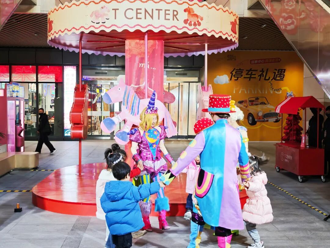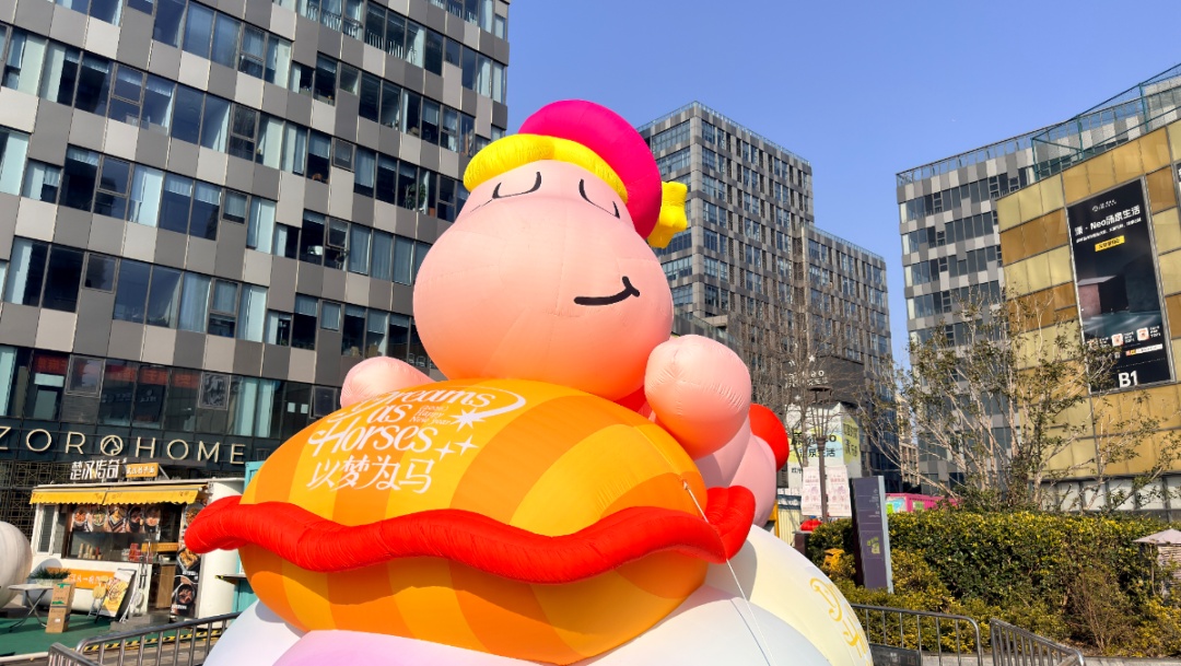 新春临近,年味愈发浓郁,漫步普陀街头,随处可见形式多样的马年元素装点其间,从喜庆的飞马雕塑到吉祥的骏马图案,处处洋溢着祥瑞气息,为市民带来满满的祝福与新春的欢愉。 普陀各大商圈更是卯足了劲,纷纷亮出各具特色的马年主题装置,风格迥异却同样吸睛。有的回归传统韵味,尽显龙马精神的磅礴气势;有的以时尚为底色,成为年轻人打卡的新地标;有的则主打联名创意,营造出步步皆景的沉浸式体验。 时尚与创意相融 不少商场创新的马年展陈成为吸睛焦点,凭借绚烂的色彩与灵动的造型,吸引众多市民驻足打卡。 在上海真如环宇城MAX1楼中庭广场,一座近8米高的新春非遗宫灯美陈格外吸睛,成为商圈最具辨识度的年味地标。这座宫灯美陈采用多层镂空结构搭建,灯体主视觉提取壁画中的飞天、祥云纹样,搭配鎏金、朱红、暖橙的传统配色,尽显典雅大气。 天安千树则巧妙结合马年主题,推出了“飞天奇遇”新春展陈。展陈以粉色为主色调,打造出多层旋转木马造型的装置,粉色的飞马带着祥云图案翩然欲飞,周围悬挂着轻柔的彩带与古风灯笼,整个场景将传统元素与现代艺术完美融合,温馨唯美。 鸿寿坊披上了喜庆的盛装,大型展板上,一匹紫色飞马跃然眼前,身上装饰着精美的花纹,周围环绕着金色的铜钱图案,寓意着新的一年将有奇迹降临。一旁一盏盏暖黄色的灯笼整齐排列,柔和的灯光透过竹编灯罩,营造出浓厚的传统年味氛围。 桃源π商业广场内,入口拱门上方,心形镂空内铺满亮片,拱门之下,以红色为主色调的新年展陈亮丽温馨,红色蝴蝶结洋溢着喜庆,马年生肖造型搭配“新年快乐”的白色大字,传递出浓浓的节日祝福。 传统与文化辉映 创意美陈引人眼球,传统年味也不遑多让。一些商圈凭借祥瑞大气的视觉呈现与深厚的文化内涵,营造出喜庆祥和的浓浓年味。 上海环球港内,以 “中国红” 为主调的新春装饰贯穿整个商场中庭,将传统喜庆与摩登商业空间完美融合,营造出 “抬头见喜、步步迎新” 的沉浸式氛围。大红灯笼错落悬挂,灯笼间串联着层层叠叠的小红灯笼串,从顶层直抵中庭地面,形成 “红韵通天” 的震撼视觉效果。 在百联中环购物广场,三匹金色的骏马造型花灯昂首挺立,鬃毛与尾巴似火焰般飞扬,身上精美的纹饰熠熠生辉,引得不少顾客驻足观赏、拍照留念。 长风大悦城内,一座青鸾主题灯饰惊艳亮相,伫立于一座中式传统风格的亭台之上,亭台周身装饰着祥云、羽毛等图案,色彩明快活泼,成为商场里的绝美风景。 LOVE大都会商圈内,巨大的锦鲤造型装饰灵动鲜活,仿佛正跃向新春的福祉;憨态可掬的雪人装置笑容满面,传递着冬日里的温暖与欢乐,为市民带来一场充满年味的新春盛宴。 童趣与潮流碰撞 信泰中心商场内,马年新春的欢乐氛围被创意展陈装点得格外灵动。这些作品源于与知名治愈系插画师弓长张的深度合作,其作品以“治愈童真”风格著称。弓长张为信泰中心商场独家创作并首发了系列小马形象IP,使之成为贯穿整个乐园的视觉向导与情感纽带。 复悦荟商场在新春之际化身为年味十足的欢乐场。户外,巨大的“梦马”IP在这里独家呈现,可爱的小马抱着橙黄相间的“福袋”,憨态可掬,“以梦为马”的字样满含美好期许。室内,红鳞熠熠的锦鲤造型装饰昂首摆尾,仿佛在迎接新春的欢歌,洋溢着喜庆的节日氛围。