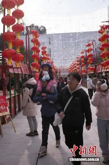 2月7日,游客带着孩子逛市集。中新社记者 殷立勤 摄