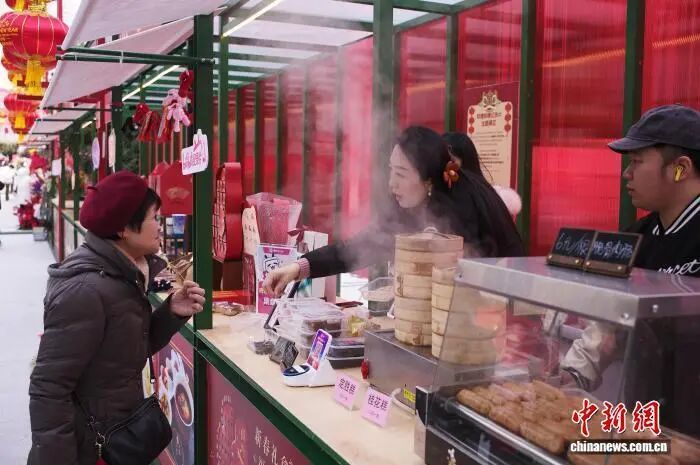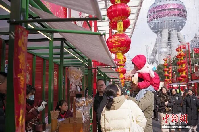 2月7日,游客在市集选购上海特色小吃。中新社记者 殷立勤 摄