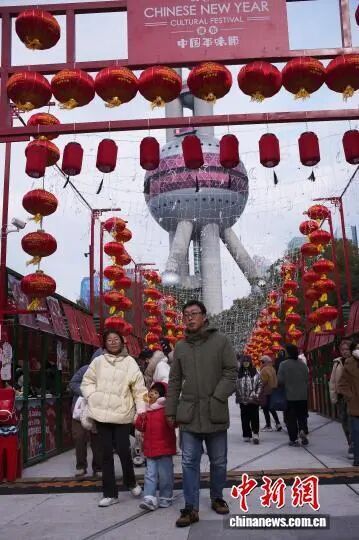 近日,首届浦东中国年味节在陆家嘴滨江大道2727号举行。游客在上海地标性建筑东方明珠广播电视塔下,感受传统年俗与都市风情的交融,品味中国年。