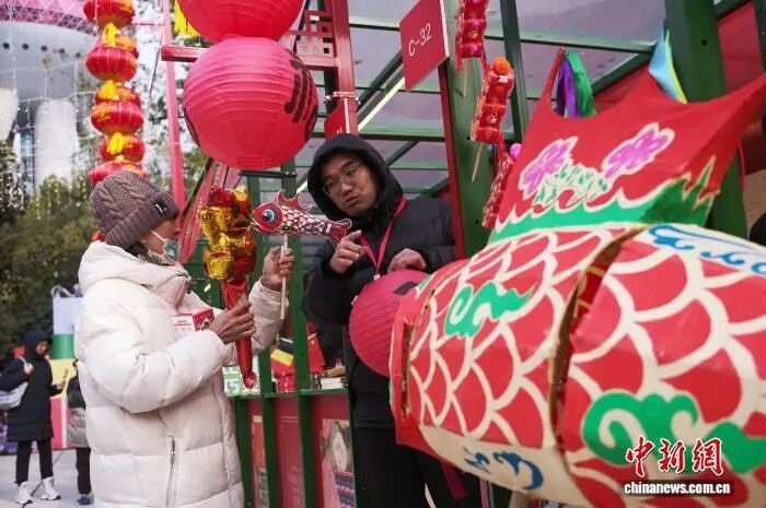 2月7日,游客在市集选购鱼灯。中新社记者 殷立勤 摄