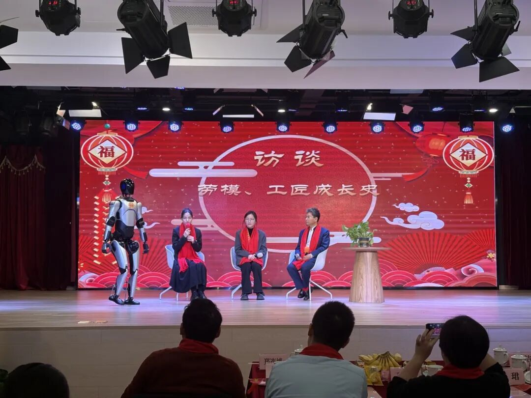 值得一提的是,此次文艺汇演加入了机器人主持人、机器人舞蹈元素。访谈环节,全国劳动模范司献凤、上海工匠郑连博、五一劳动奖章获得者郑洁与机器人主持人展开热烈互动,在一问一答间诠释劳模精神、劳动精神、工匠精神。司献凤说,最初她也认为美容只是普通手艺,在一次次实践中,她逐渐将精益求精内化为自我要求,靠点滴积累深耕行业。新的一年,她祝福所有新就业形态劳动者,在各自赛道踏实耕耘、携手加油奋进。