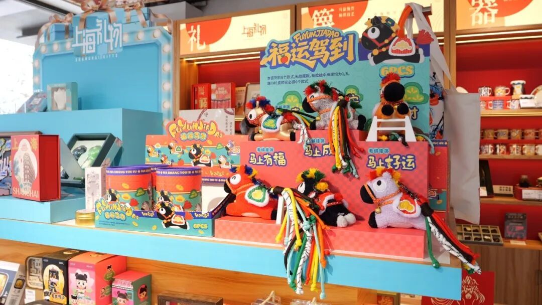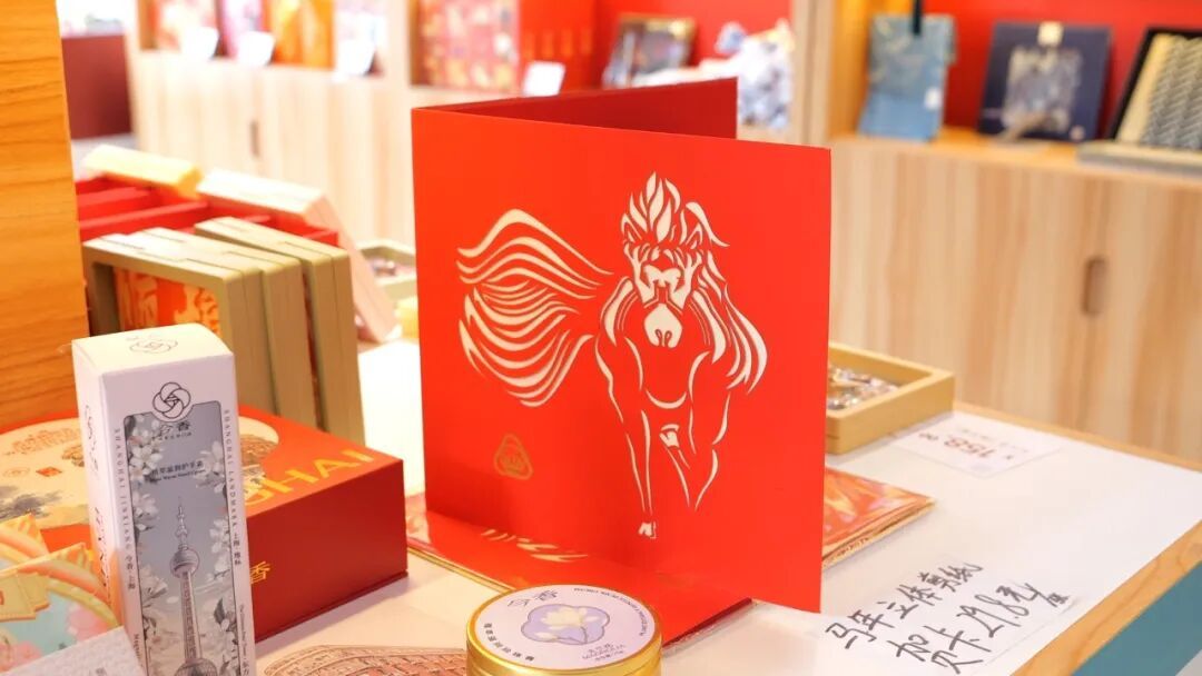 在印象西大街的“上海礼物@嘉有好店”内,年味扑面而来。店面最显眼的位置,陈列着以“马”为灵感创作的系列新品:既有马形贺卡、福字、帆布袋等实用好物,也有苏绣马、玩偶马等精美工艺品,设计多样,吸引不少顾客进店选购。