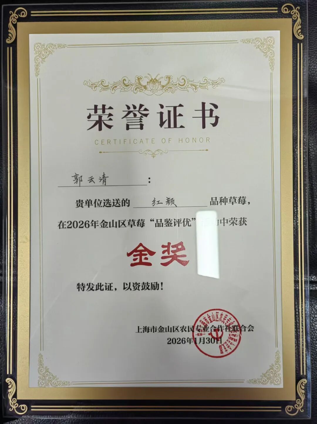 近日,位于山阳镇的天天草莓西瓜园果香四溢。这家草莓西瓜园不仅盘活了村里的闲置土地,更在2026年金山区草莓“品鉴评优”活动中,从48种草莓样品中斩获金奖,一颗颗莹润鲜醇的生态好果,为消费者送上新春舌尖上的清甜与暖意。
