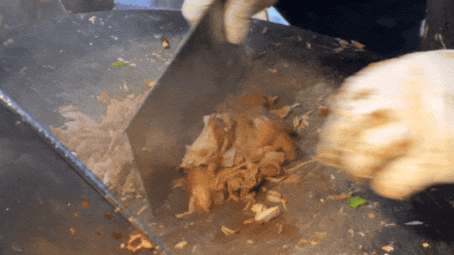 摊主刷酱、加菜、卷起、切段