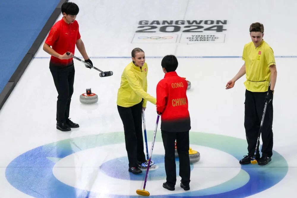 2024年1月31日,中国选手龚长玉婷(右二)与瑞典选手罗克辛在赛后握手致意