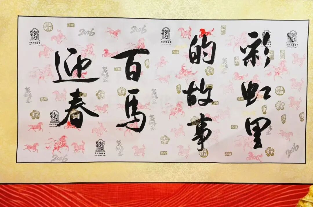 随着活动进行,姿态各异的“骏马”逐渐填满画卷,或昂首嘶鸣,或驰骋向前,仿佛有了生命。活动尾声,大家还在虹口区文化馆书法家的带领下,共同为这幅集体作品题字落款。笔墨与印痕交融,一幅象征残健同心、携手共进的新春作品正式诞生。