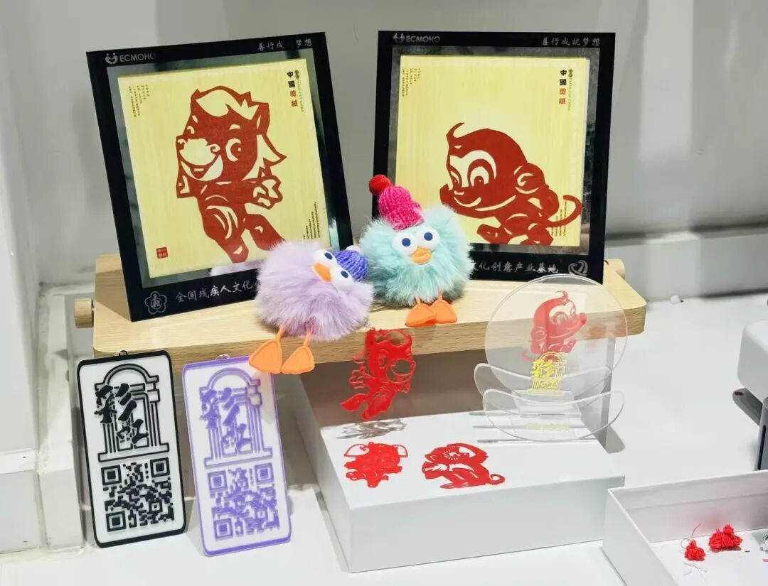 据介绍,这些通过3D打印机打印成型的生肖作品,模板均来自于残疾人亲手创作的十二生肖剪纸作品。经3D打印后,参与者还可继续通过组装、装饰,制成独一无二的生肖钥匙扣。这份融合了科技智慧与传统生肖纹样的礼物,让参与者们爱不释手。