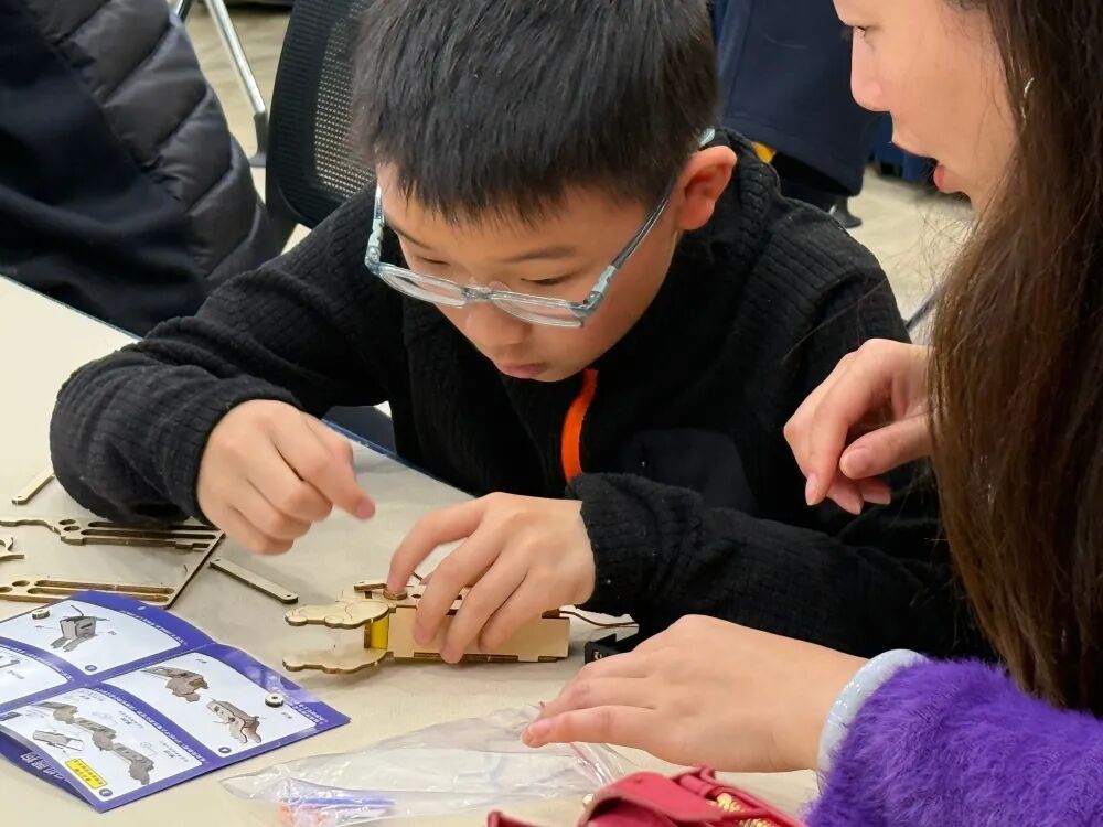 活动现场还开启了一场创意手工制作,让参与的家长与孩子携手合作,共同拼装属于自己的机器狗模型。只见孩子们专注地研究零件,家长们耐心辅助,每个孩子都骄傲地举起自己亲手制作的机器狗模型,成就感满满。这些作品看起来简单,却承载着孩子们对科技充满天真的好奇。此次活动之外,相信“机器狗探秘图书馆”点燃的科技火花将在孩子们心中持续发光。