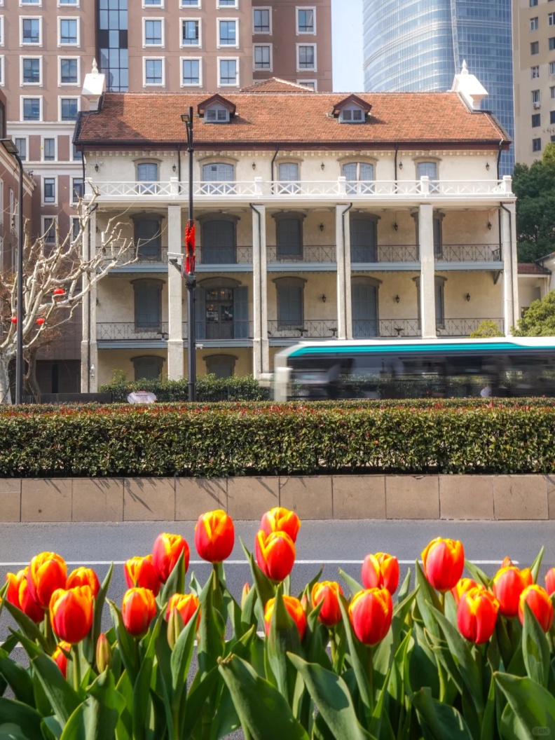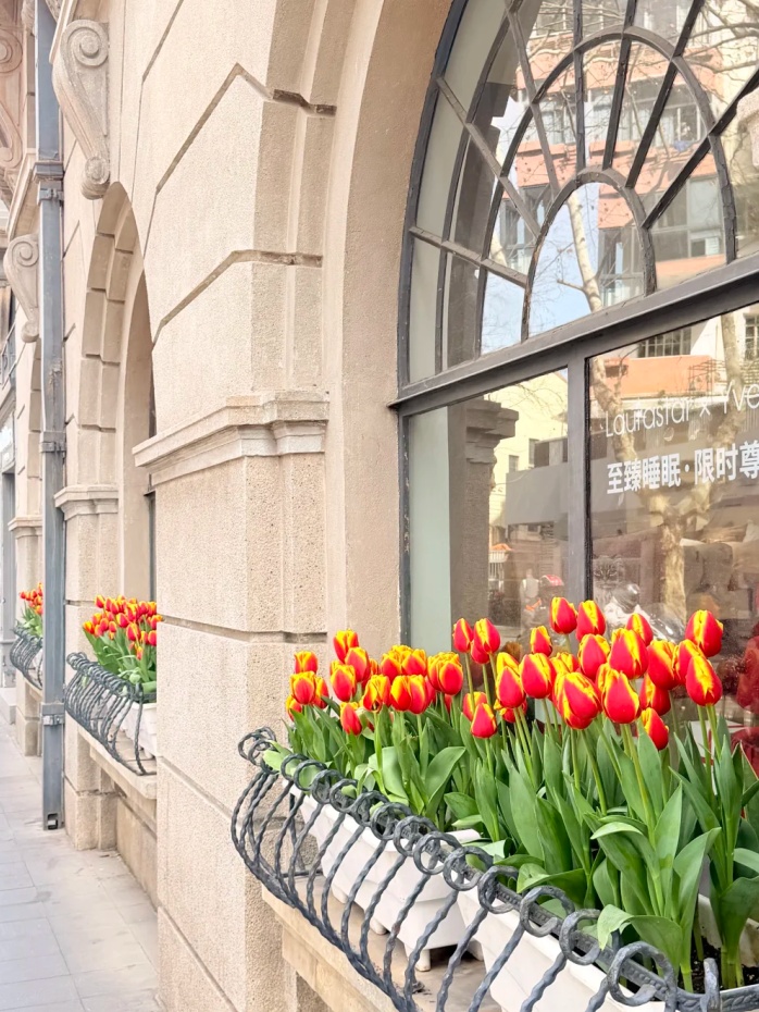 当“网红”打卡地武康大楼遇上烂漫的郁金香,一场复古与诗意的邂逅就此展开。
