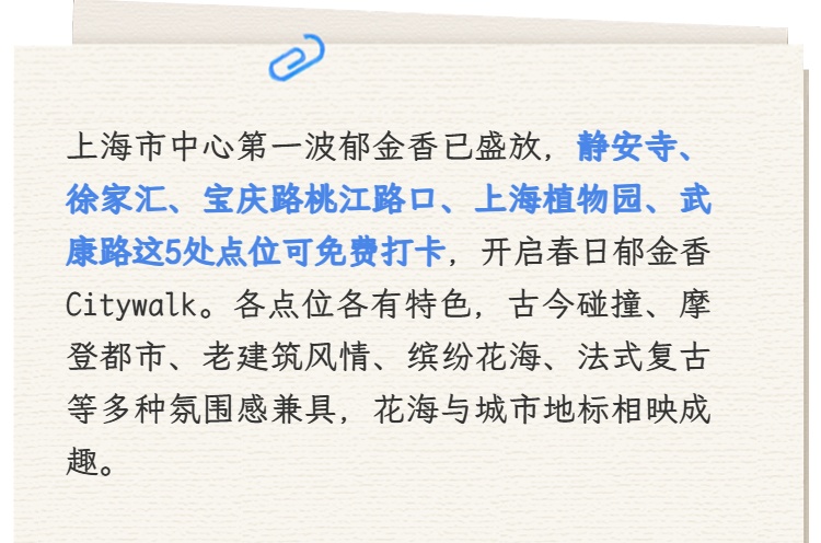 花带与车流同框,是摩登都市的春日标配。还可顺路打卡徐家汇公园,感受都市繁华与静谧花景的切换。