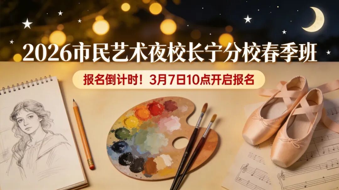 2026上海市民艺术夜校春季班招生即将启动。作为上海为民办实事项目的重要组成部分,市民艺术夜校始终聚焦市民“8小时外”的艺术学习需求,以提升文化素养、丰富精神生活为宗旨,打造普惠优质的公共文化服务平台,助力上海社会主义国际文化大都市建设。本次春季班课程体系全面升级,长宁分校也亮点纷呈,快来共赴这场艺术之约,让美育融入日常吧!