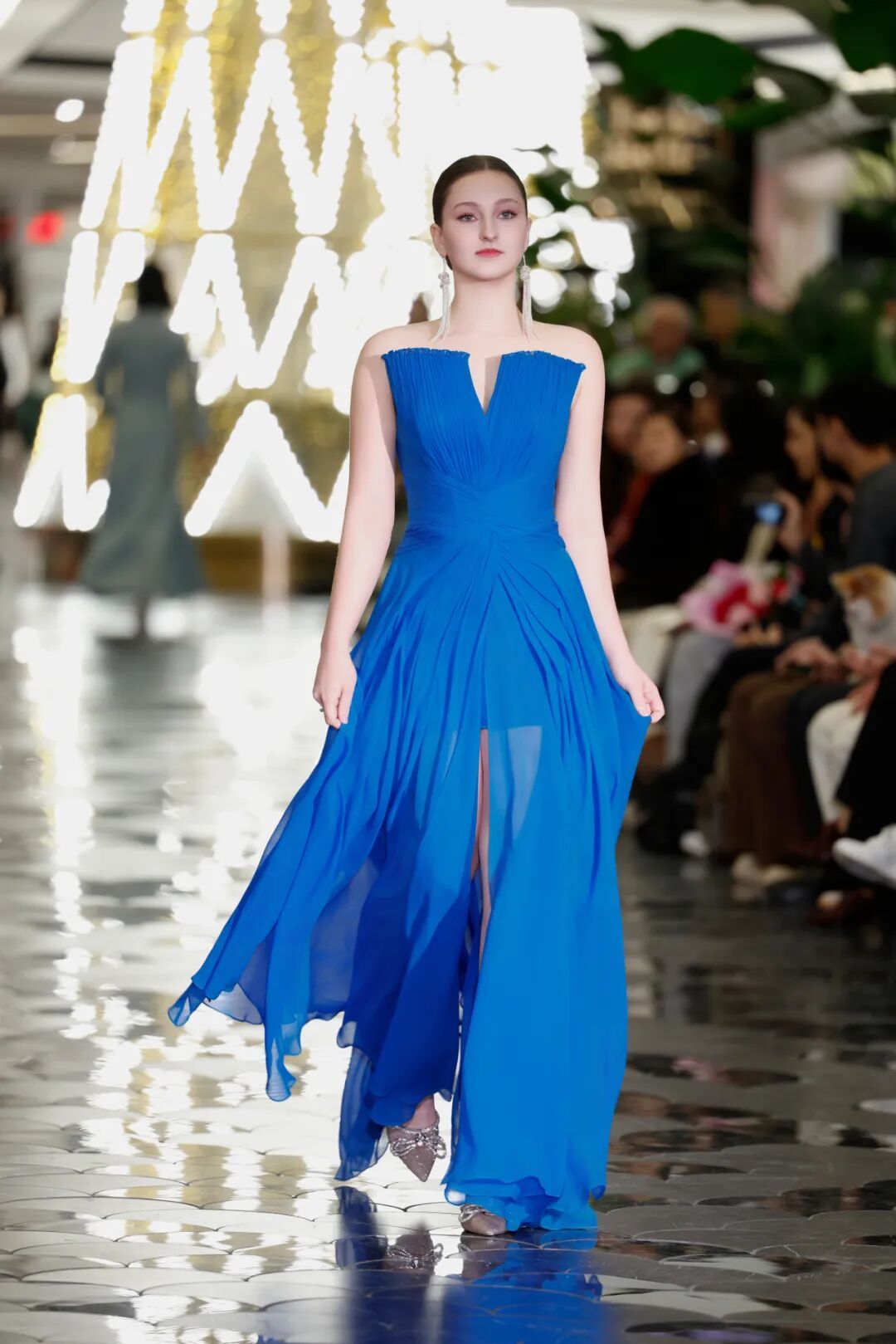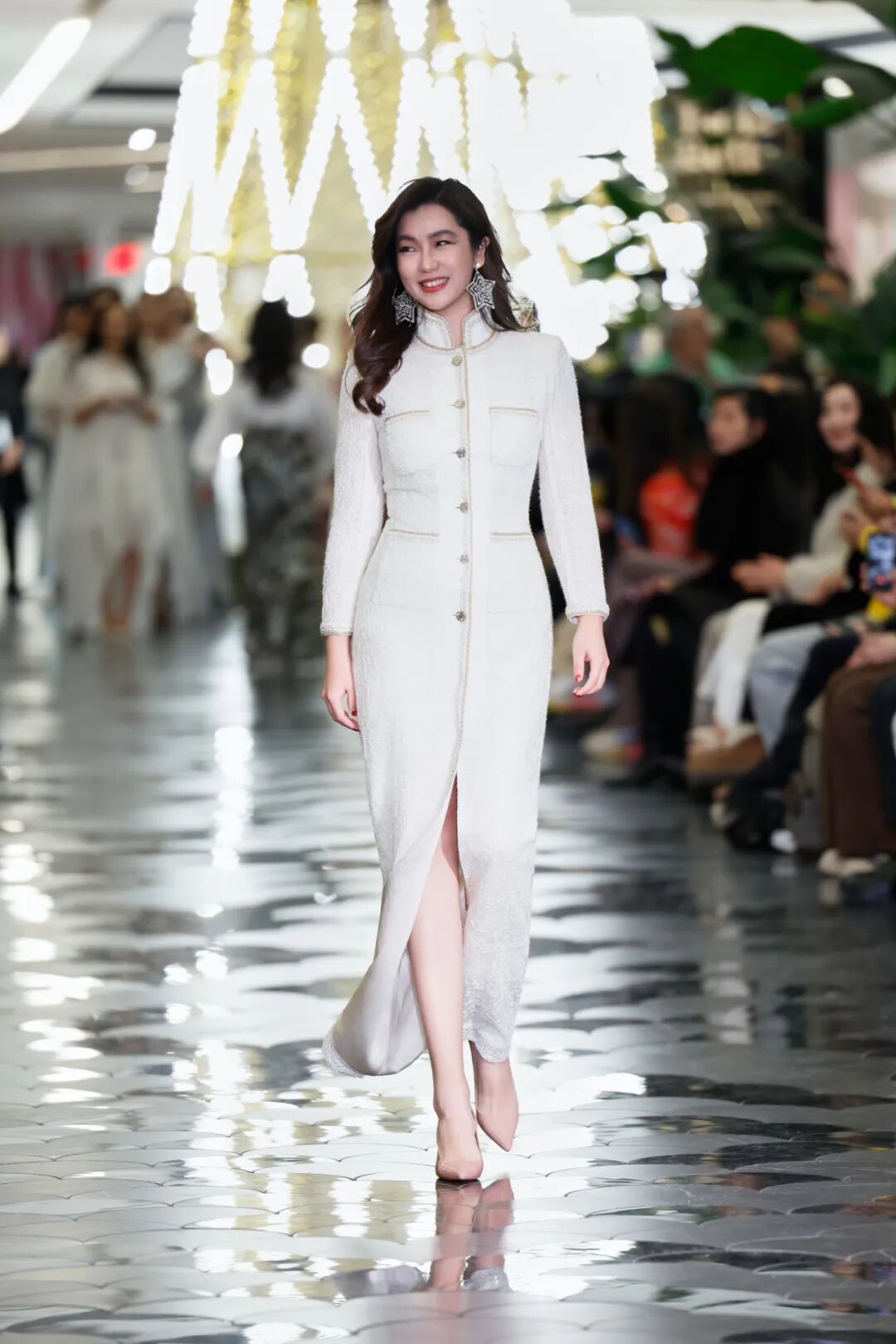 本系列由专业模特和30多位杰出女性共同担纲模特,T台上,她们自光影中款款走来,仿佛一个个落定的“点”,串联成有温度的“线”,最终蔓延开一个跨越时空的“面”。律师、歌手等来自全球各行各业的女性,以素人模特的新身份,用真实和自信构筑起东西方文化、多元专业领域、社会角色之间的桥梁,也生动诠释了新系列所倡导的“连接、理解与融合”的精神内涵。