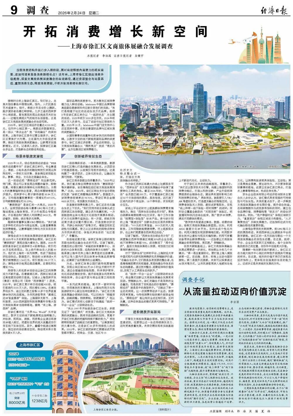 2025年,徐汇区区域经济总量达4153.08亿元,位列中心城区第一。亮眼经济数据背后,是一场从“单点业态”到“系统融合”的深刻变革。上海市徐汇区委书记曹立强表示,徐汇区正聚焦扩大内需,立足国内大市场促进消费,推动文商旅体展深度融合,让新需求创造新增长。近日,记者深入走访,探索徐汇区融合多业态、打造新生态的路径和经验。
