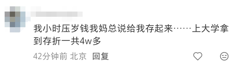 也有网友说长大后收到了妈妈给的压岁钱存折