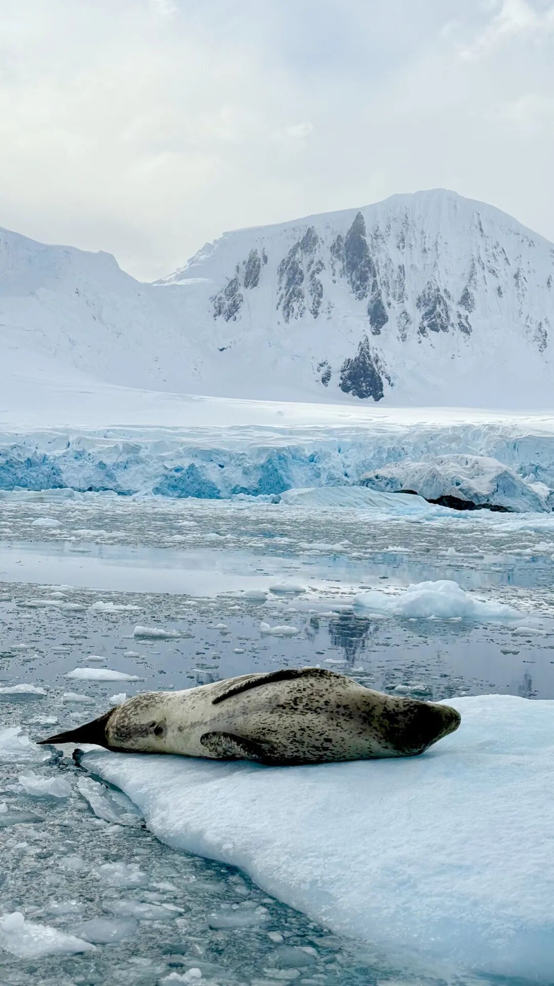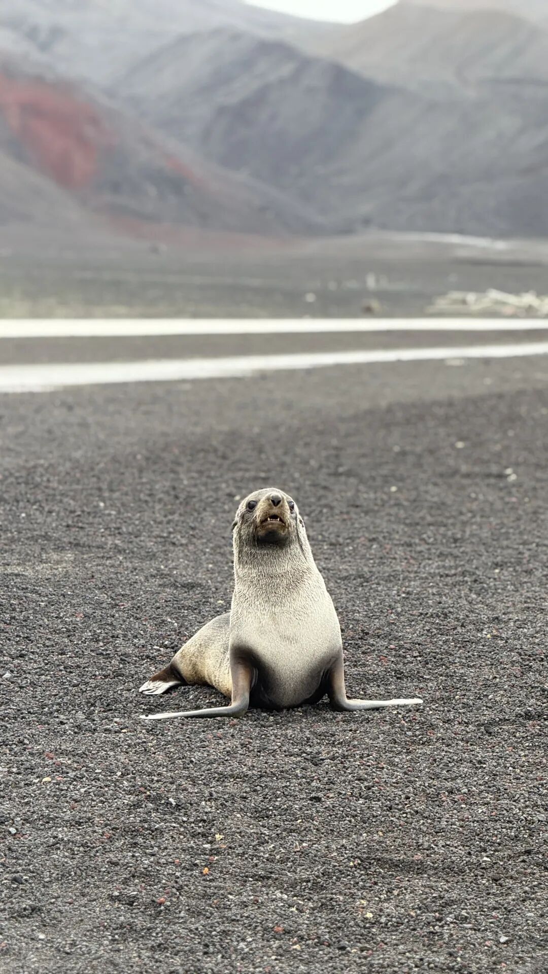 回程路上,一头海豹躺在路中间休息——哦不是,南极本没有路,来的人多了也不行,这里是属于它们的。