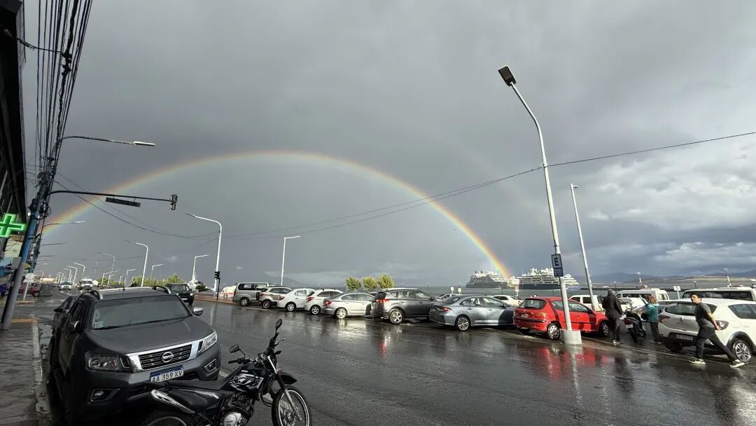 上岸,一场突如其来的大雨,却也让我们看到了双彩虹: