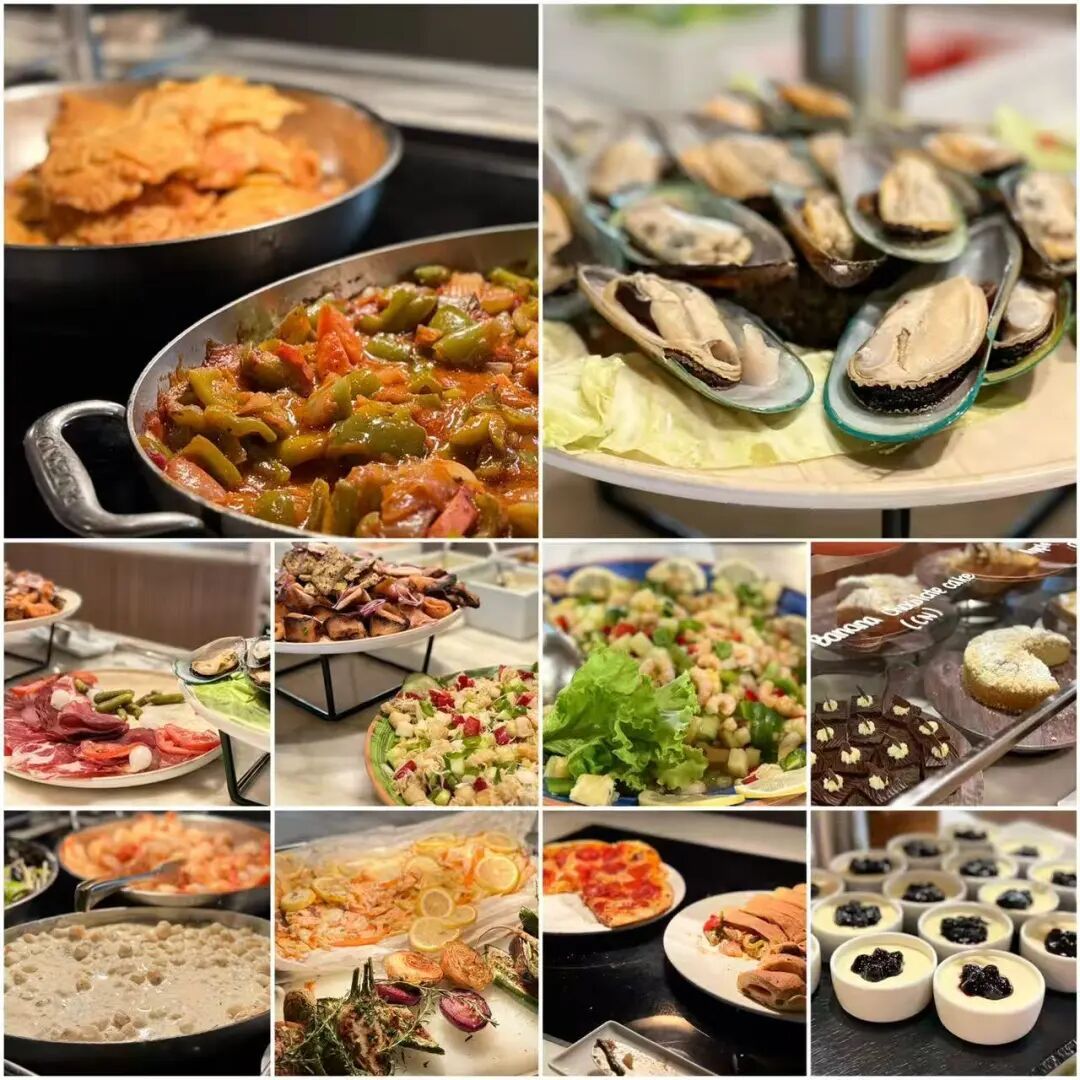 自助餐厅的菜色大致是这样,酒水任意点:
